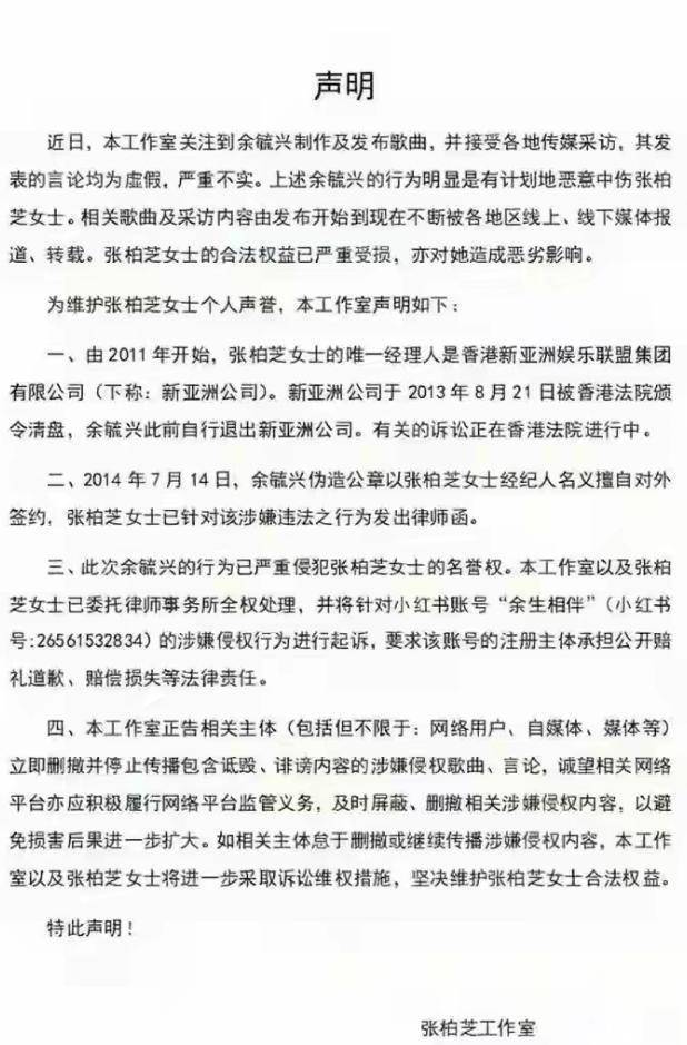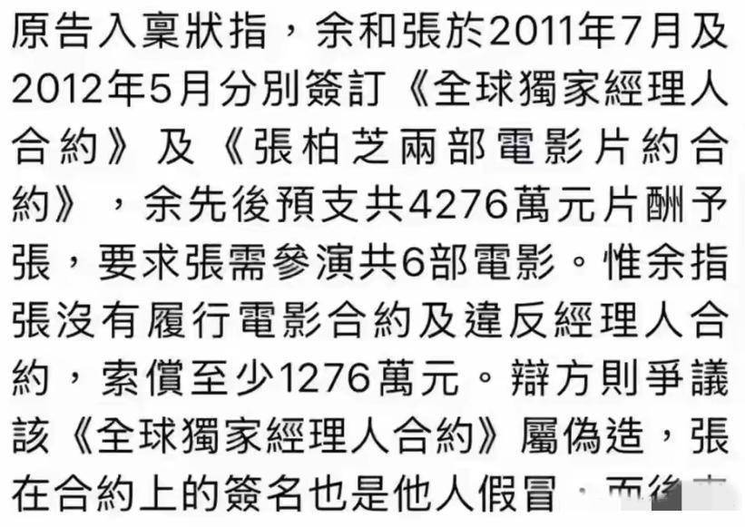 张柏芝一方坚决声称合约上的签名不是她本人所写。