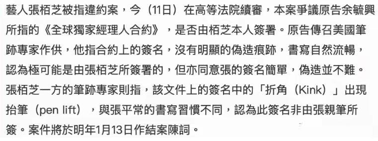 张柏芝官司暂落帷幕,笔迹专家当庭互撕,裁定结果明年见